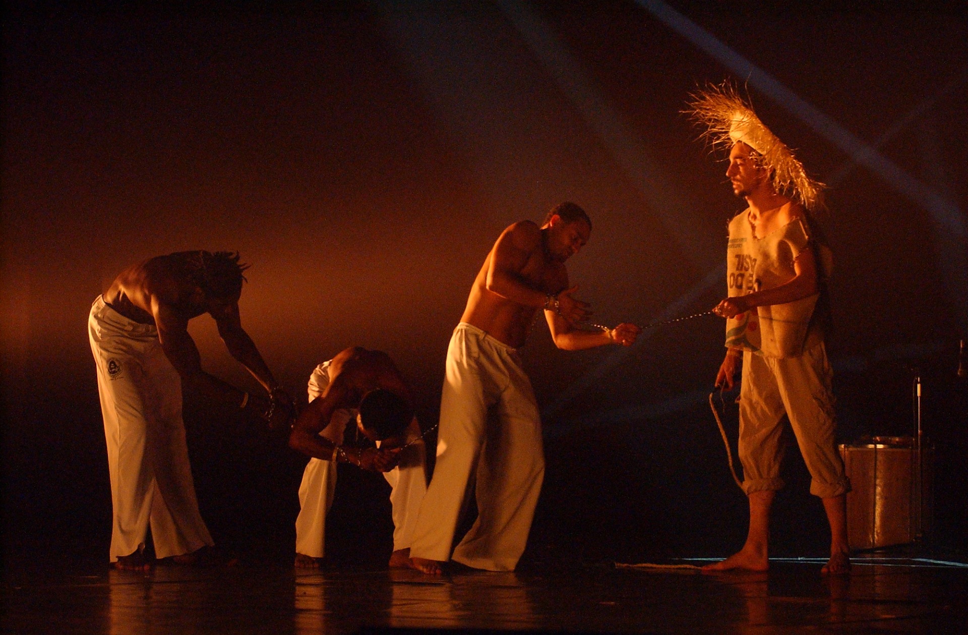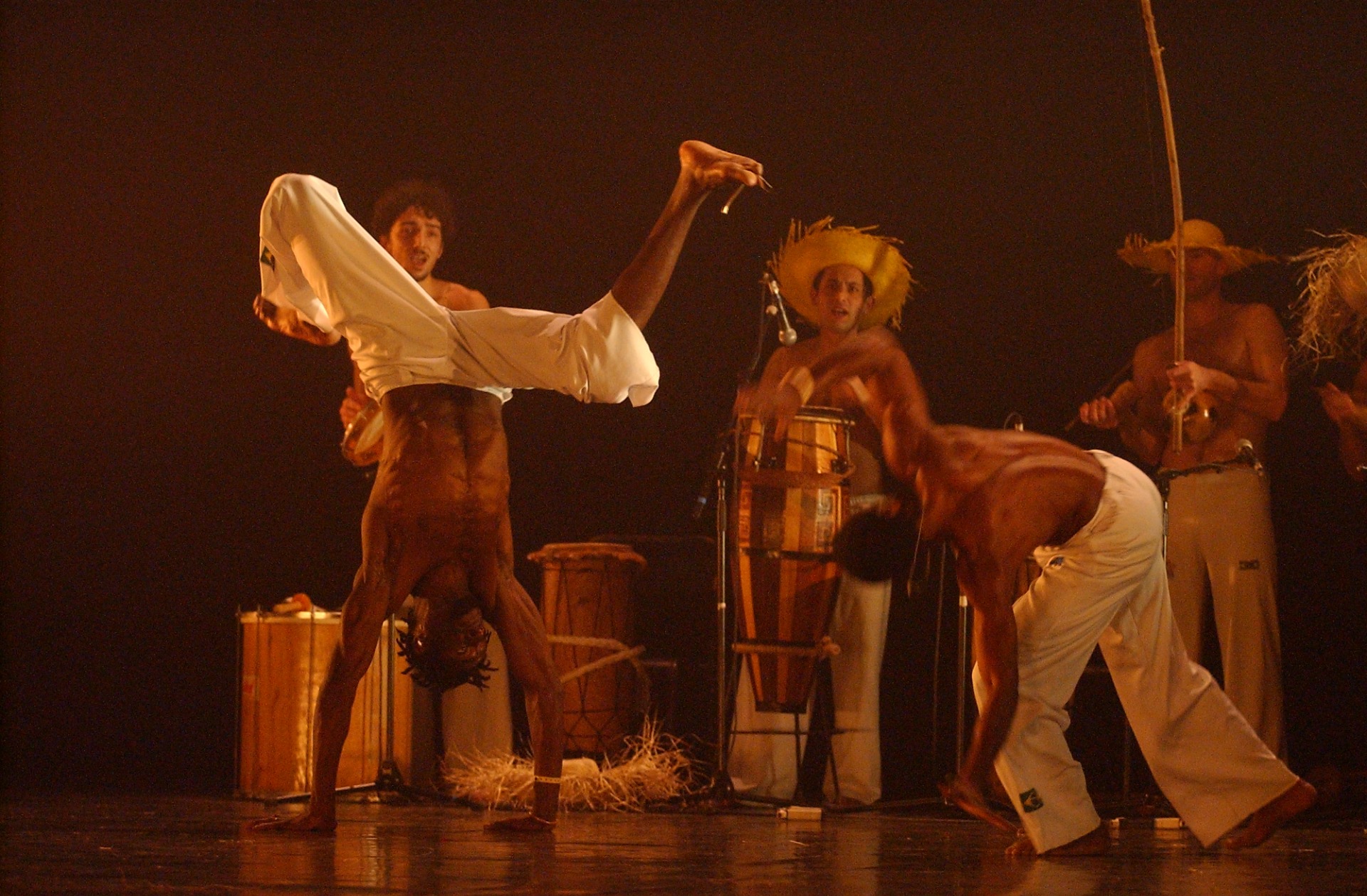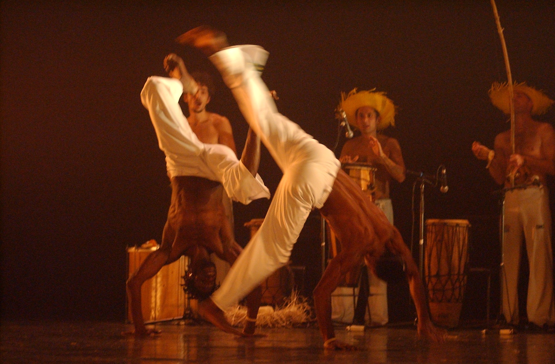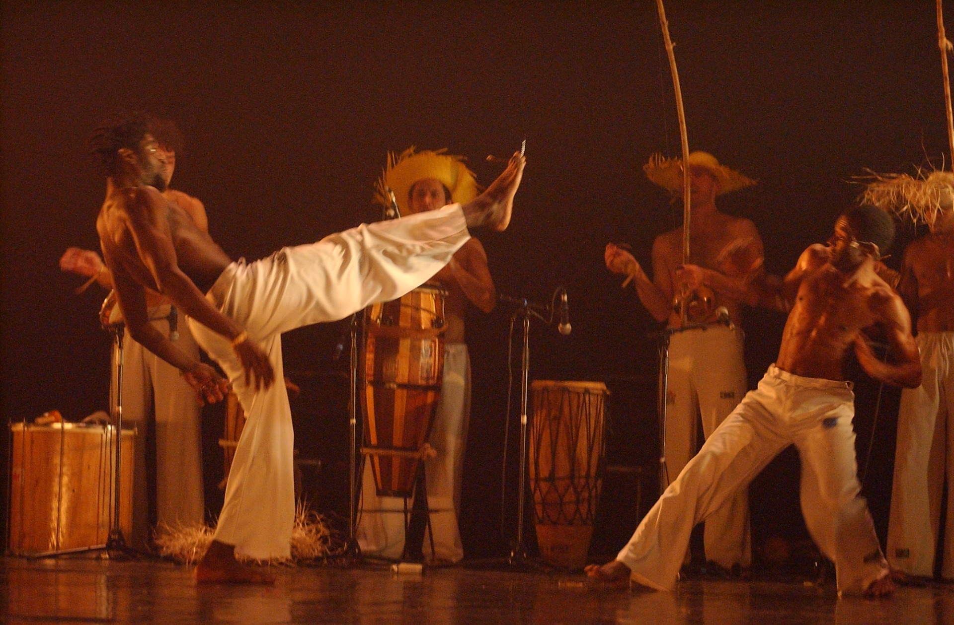 Bien avant l'apparition de la Capoeira au Brésil, en Afrique, plus précisément au sud de l'Angola au royaume Ndongo existait sa forme ancienne : la danse du N'golo, pratiquée par les indigènes. La lutte était réalisée sous forme de culte, en faisant des sauts et des jeux d'imitations d'animaux. Leurs corps souples favorisaient les danses guerrières. Dans la pratique, ces luttes symbolisaient la force et le pouvoir des guerriers. Considérés constamment comme des perturbateurs, ils se déplaçaient en bande. Les lieux de rencontres étaient les plages et les forêts. Benguela est une des villes côtières du littoral d'Angola où se vérifie l'apparition de cette lutte. Ses spécificités étaient la chute des adversaires avec des « rasteiras » ou « bassulas » (croche patte), elle était redoutée par les habitants. L'expansion des colonies en Amérique nécessitèrent une main d'œuvre importante pour les colons européens qui puisèrent dans leurs colonies africaines. C'est pour ce motif que l'esclavage noir fut pratiqué en masse à travers l'océan Atlantique. Les envahisseurs étant détenteurs du marché des esclaves, ils envoyèrent une nombre effarant de noirs en Amérique du sud et dans les Antilles, même aujourd'hui difficilement calculable. Le trafic humain entre le 15ème et 19ème siècle fut dù au profit des conflits consécutifs des guerres tribales africaines par les colons, empêchant les populations d'organiser une résistance efficace. Une population naïve quant aux prix des échanges commerciaux avec les européens favorisèrent la décadence du peuple noir. Hommes, femmes et enfants furent capturés, vendus, et embarqués de force. Une fois arrivés en Amérique, à savoir au Brésil, ils n'avaient pas de valeur humaine pour les propriétaires. Ils furent vendus et revendus comme de la marchandise, servant aux durs travaux forcés. Leur durée de vie était estimée entre 5 et 7 ans. Beaucoup d'entre eux ne survirent pas aux mauvais traitements de leurs maîtres. La culture noire ne fut pas transportée dans des livres, ou dans un quelconque matériel, mais dans le corps et dans l'âme. La Capoeira au Brésil a débutée par un type de danse ritualisée en lutte. A Baίa, aujourd'hui encore s'observe des restes de capoeiragem ancienne avec des croyances cérémoniales et des chants rituels. Ils existent beaucoup d'opinions par rapport à l'apparition de cette lutte, une des questions fondamentales est l'origine du nom, Capoeira, apparu pour la première fois dans les écrits historiques du brésil au 17ème siècle durant la guerre de Palmares. Les générations noires gâchèrent des vies entières à travailler dans les plantations. A cette époque existait un conflit entre portugais et hollandais pour la distribution des territoires, il y eut des invasions hollandaises sur tous les points clés. Les exploitations, les Senzalas et les prisons furent attaqués et pillés. La guerre eut des impacts désastreux (pour les portugais), des milliers d'esclaves noirs se rebellèrent, s'enfuirent dans la jungle et dans la forêt, créant des communautés, des Quilombos (maquis d'esclaves). Les rebelles étaient de résistants guerriers. Ils luttèrent pour la liberté, revendiquèrent l'égalité et leurs droits contre leurs seigneurs. Une fois que les invasions cessèrent, les Portugais envoyèrent des expéditions afin de détruire ces petites nations, et capturer les esclaves révoltés. A cette époque, on raconte qu'il existait des « chapons », hommes qui se cachaient dans la jungle, qui surgissaient pour attaquer, affrontant les « capitaine-des-buissons » qui avaient comme travail de capturer les esclaves fugitifs. La communauté la plus importante fut le Quilombo de Palmares, commandé par le roi Ganga Zumba puis par son neveux Zumbi. Les quilombos furent des lieux d'habitation, d'entrainements et d'enseignement contre l'esclavage. Les noirs possédaient de très bonnes connaissances guerrières et de la forêt. De génération en génération ils conservèrent et partagèrent leurs croyances et valeurs éthiques de culture africaine. Durant les conflits entre rebelles et seigneurs, certains noirs furent capturés, et ramenés aux Senzalas, prisonniers. Les otages capturés transportèrent le jeu de pieds, lutte guerrière. Les prisonniers se réunissaient alors en groupe fermé pour s'entrainer. Pour fuir le regard des surveillants et de leurs seigneurs, ils cachèrent l'apparence de la lutte derrière la danse et les rythmes musicaux. Fatigués par les dures journées de travail dans les plantations, et par la malnutrition, ils continuèrent malgré tout à s'entrainer. Leur énergie était alimentée par les chants, les lamentations et les cris. Les coutumes africaines et les prières aux divinités permettaient de s'exprimer, et de demander de l'aide à celles-ci pour leur dure vie de prisonniers. La Capoeira dans les Senzala survécu grâce à sa créativité, sa malice, et son envie de liberté. Après l'abolition de l'esclavage, la guerre du fameux Quilombo de Palmares et autres quilombos, le capoeiriste était un type de personne particulier. Il s'habillait de manière particulière (chapeau de côté et anneau d'or à l'oreille). Les capoeiristes étaient payés pour être des mercenaires pour des embuscades ou des assassinats. Il faut savoir qu'après l'abolition, les esclaves libres vivaient dans une grande misère. Plus tard, la lutte africaine se développa et rencontra dans le métissage des noirs, des indiens et des européens son parfait exécutant : maigre et musclé, plus petit que le noir et plus habile que le portugais. Se fut le « mulâtre » qui s'assimila à la lutte de la Capoeira, transformée en une notable lutte acrobatique. Au milieu du 19 siècle, la Capoeira vécu son apogée. Dans des villes comme Rio de Janeiro, Recife et Salvador de Baίa, existèrent des groupes ou bandes de Capoeira identifiées comme des crimin